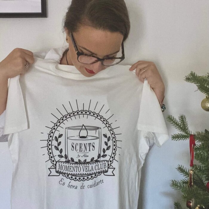✅Camiseta Momento Vela Club de algodón 100% orgánico certificado Peta approved Vegan con el diseño original de Scents by Alena,