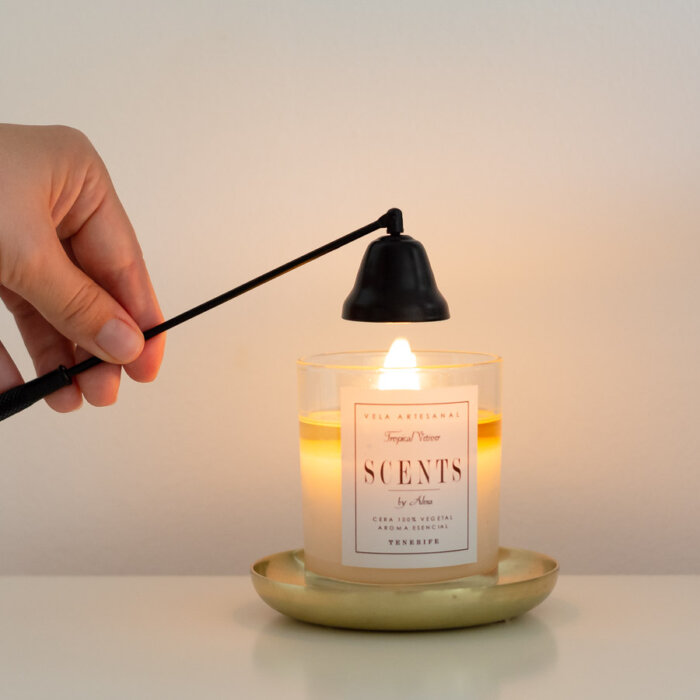 Pinza, apagavelas y tijeras para apagar la mecha, tendrás unas velas sin humo y sin olor a quemado.