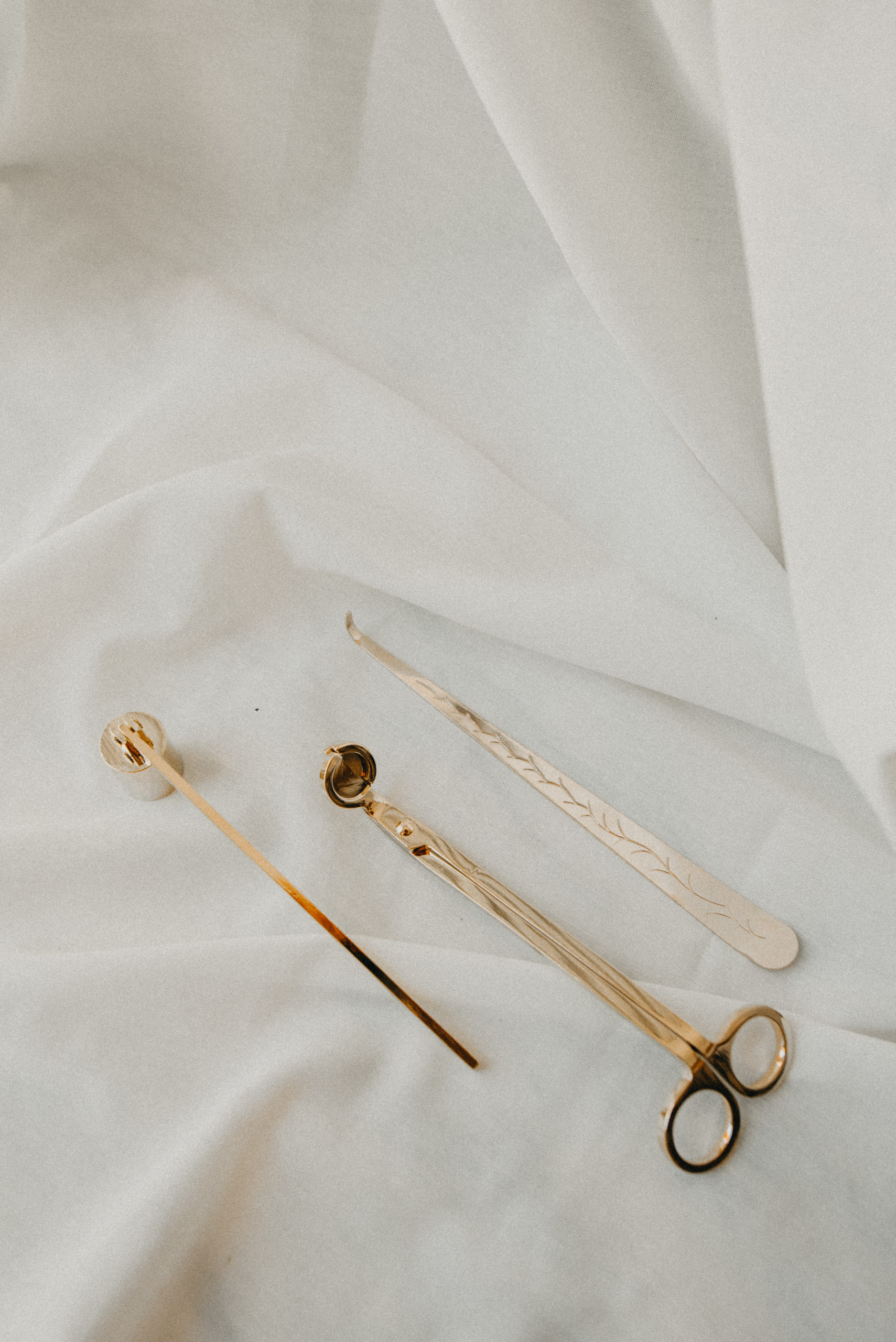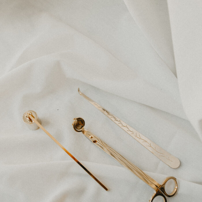 Pinza, apagavelas y tijeras para apagar la mecha, tendrás unas velas sin humo y sin olor a quemado.