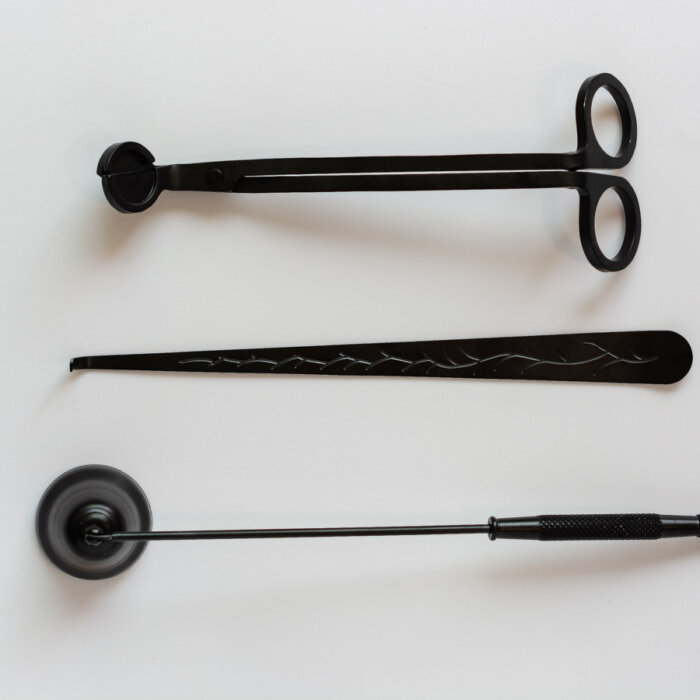 Pinza, apagavelas y tijeras para apagar la mecha, tendrás unas velas sin humo y sin olor a quemado.