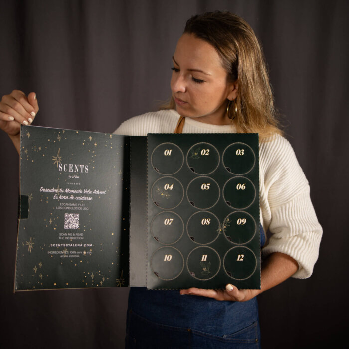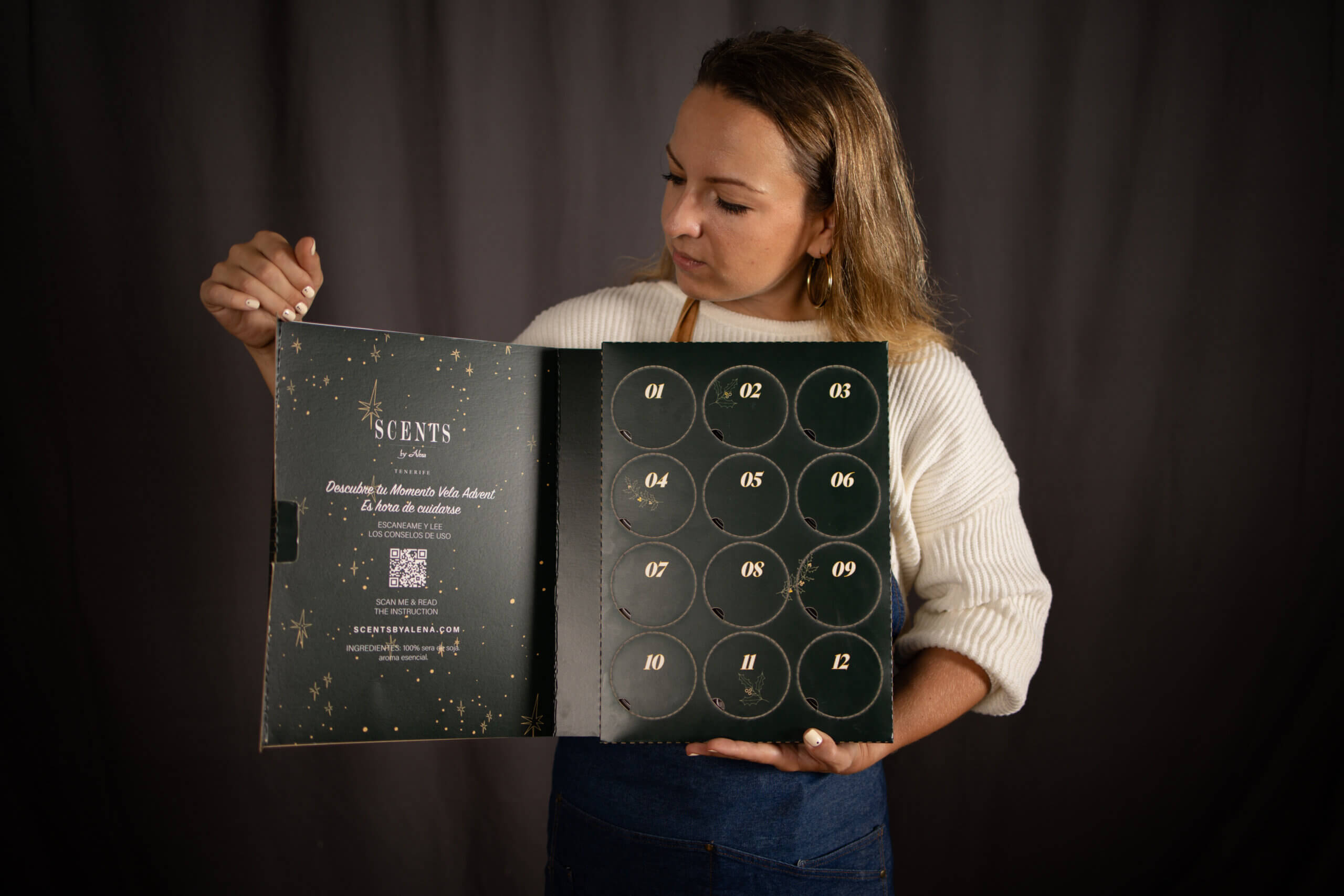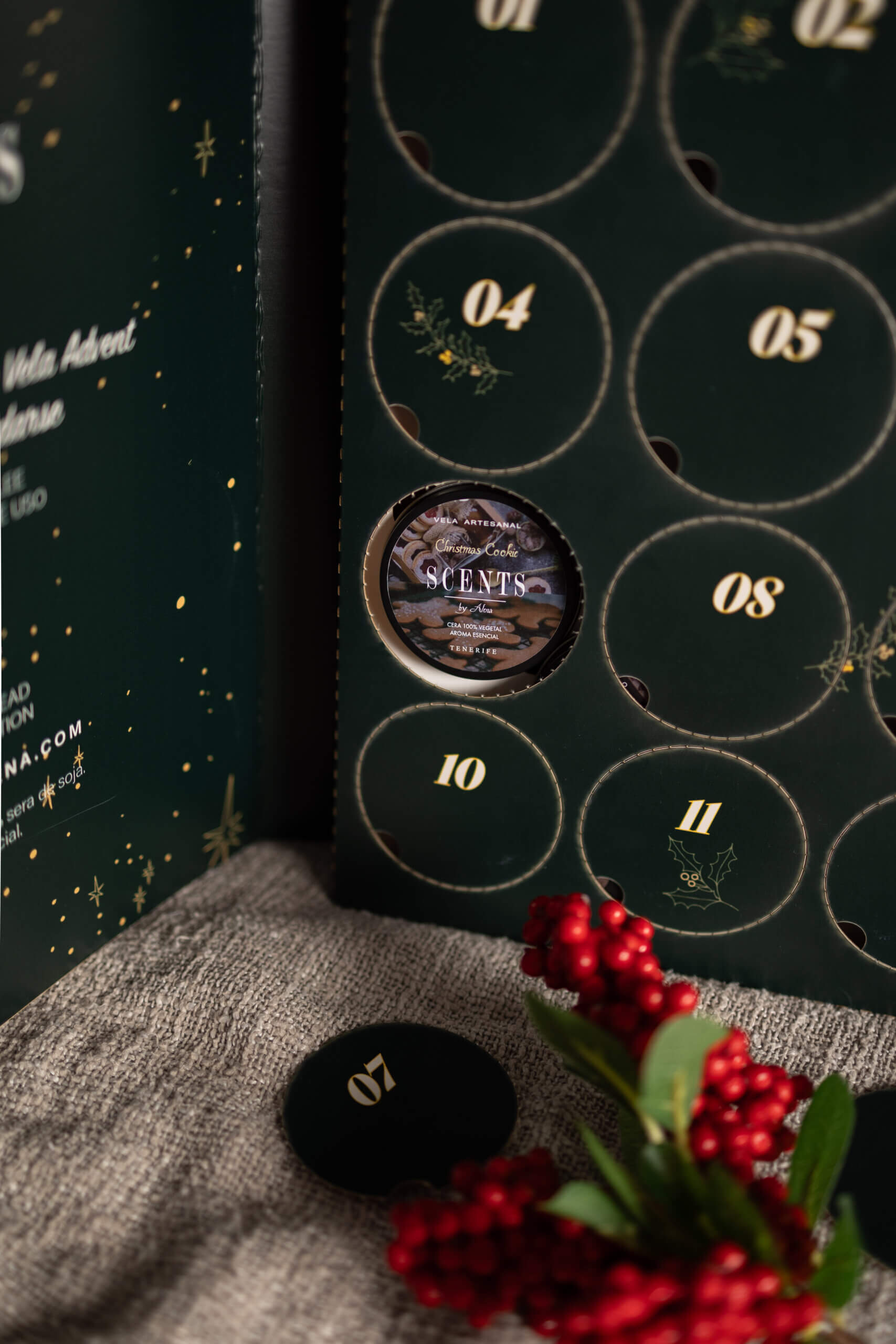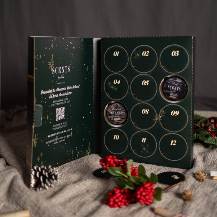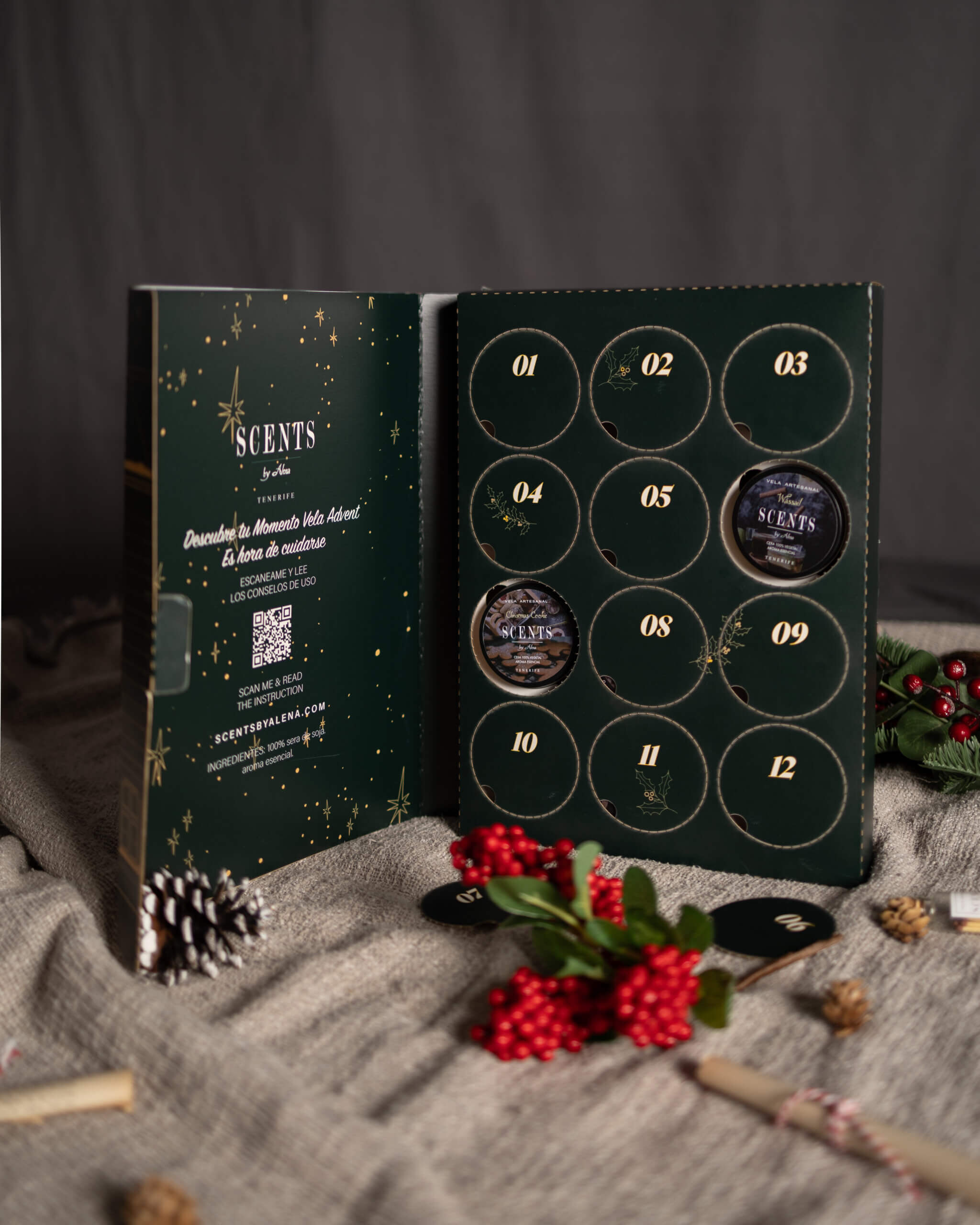 Calendario de Advent con 12 velas de formato 95 ml (min. 20h de duración) con 12 aromas exclusivos.