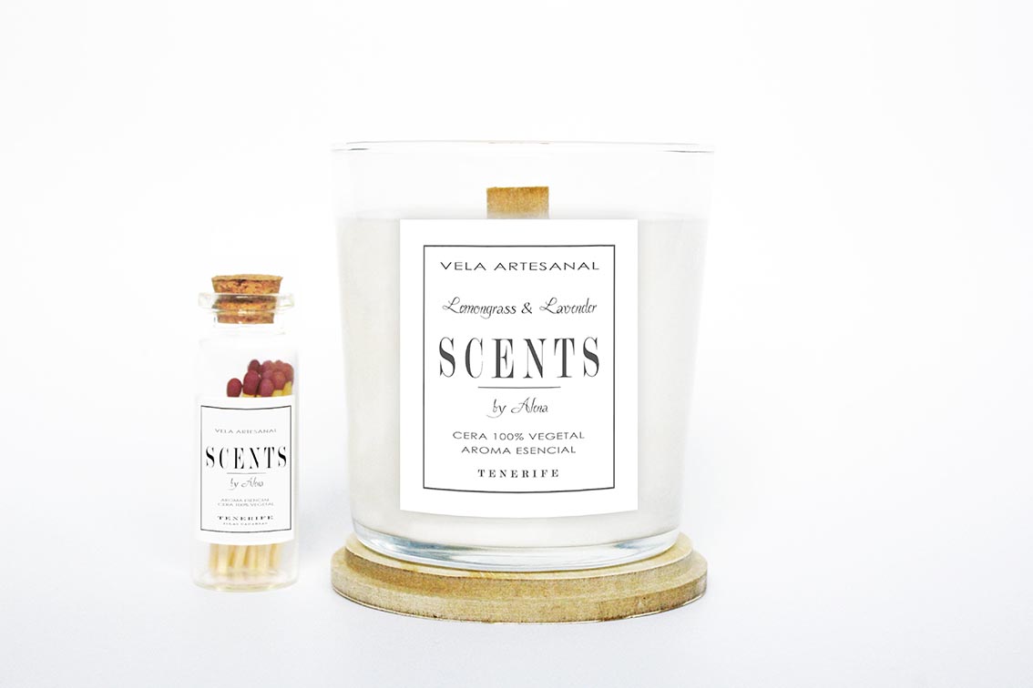 La tapa de la vela esta hecha a mano. Viene acompañada con una botellita de cerillas que le dan un toque particular y elegante.