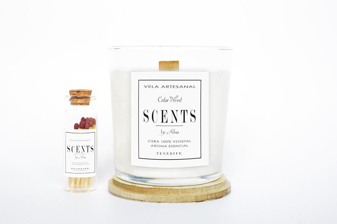 La tapa de la vela esta hecha a mano. Viene acompañada con una botellita de cerillas que le dan un toque particular y elegante.