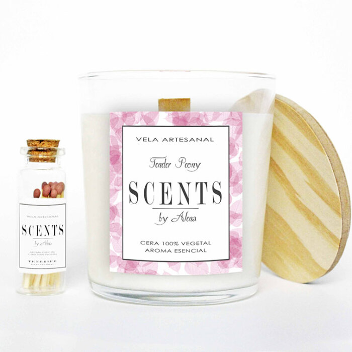 Vela grande en recipiente de cristal con tapa chapado en pino (la tapa esta hecha a mano en Tenerife).