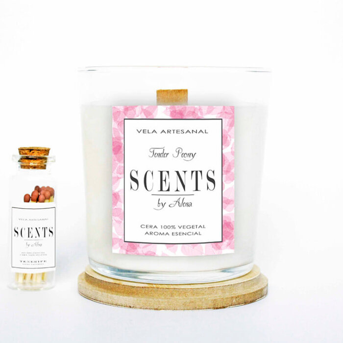 8cm en diámetro, 9 cm de alto, 235 ml de cera de soja.
