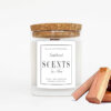 Vela grande aromática de cera de soja en recipiente de cristal con tapa chapada en pino.