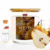 Vela grande aromática de cera de soja en recipiente de cristal con tapa chapada en pino.