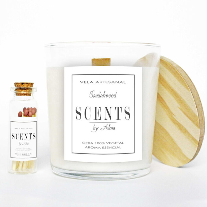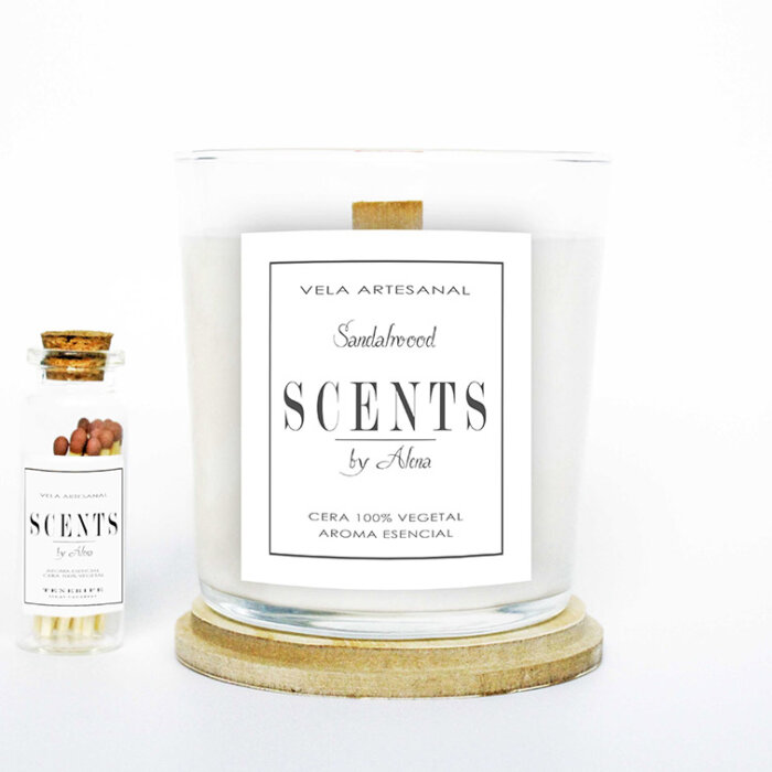 Viene acompañada con una botellita de cerillas que le dan un toque particular y elegante.