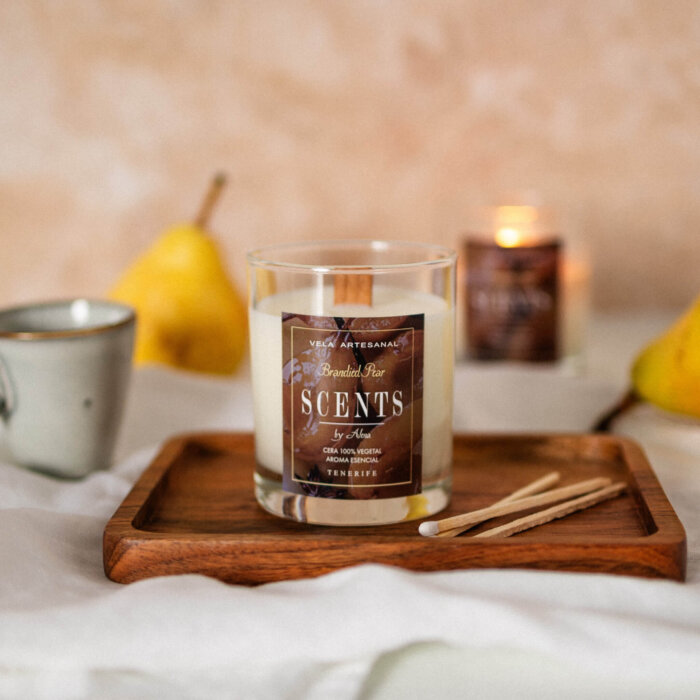 Esta fragancia es una dulce indulgencia de pera madura y brandy añejado en barrica.
