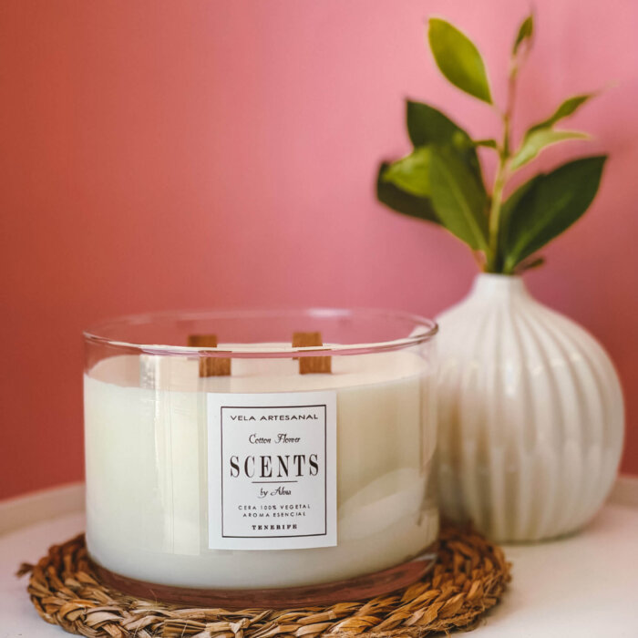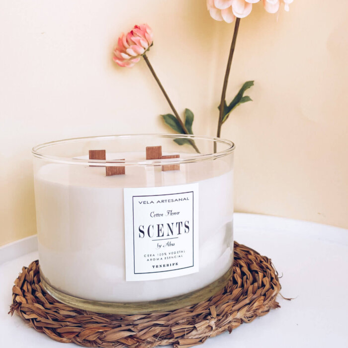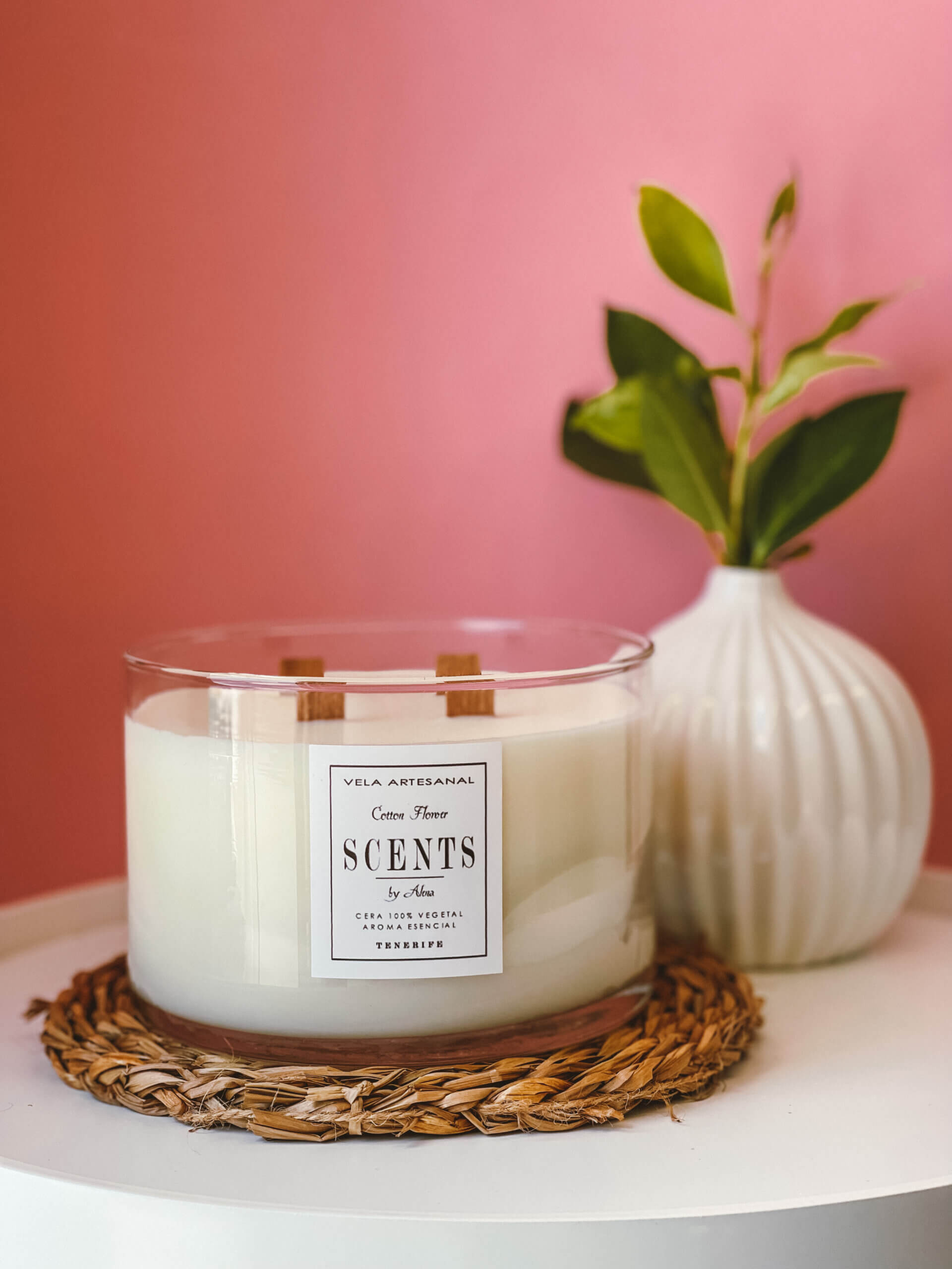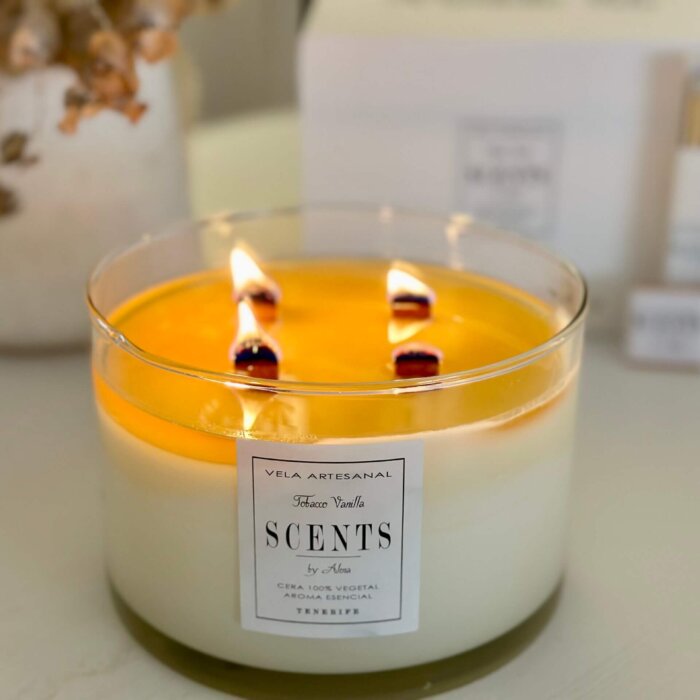 Descubre nuestras exclusivas velas naturales aromáticas de cera de soja hechas a mano por una artesana. Os presentamos nuestra vela estrella XXL de 1.000 ml, con 4 mechas de madera.